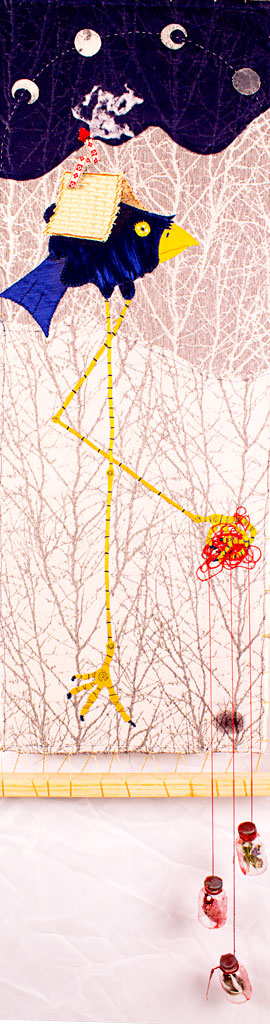 Como artista textil encuentro que las tramas y urdimbres de las fibras textiles naturales generan patrones semejantes a la vida misma: el hilo creador de la vida de cada individuo se cruza, entrelaza y decora de las vidas de otros, nuestra vida se nutre se enriquece, se rasga,se rompe, se mancha  y se remienda enriqueciendo nuestra existencia material en este mundo.